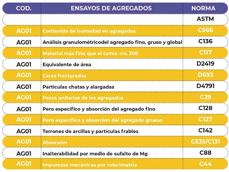 • Asesoría técnica en producción de agregados y mezclas de asfalto y concreto