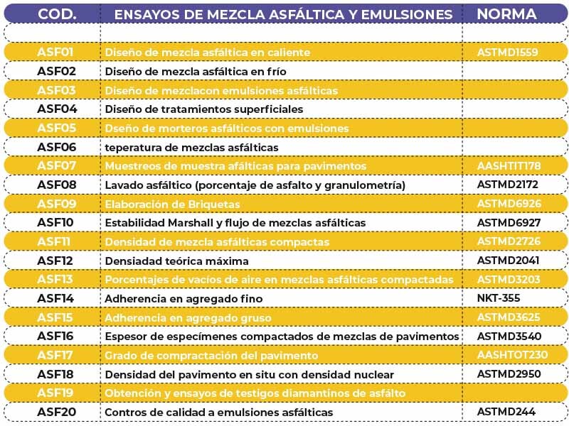 • Diseño de mezclas asfálticas (cemento asfaltico y emulsiones)